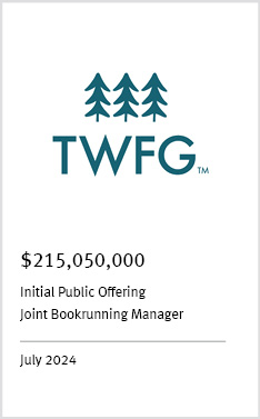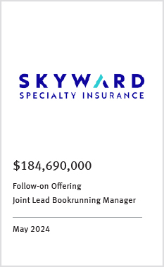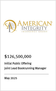 KBW advised on the largest mutual to mutual insurance company merger in the past decade and is the leader in public equity offerings for insurance companies.