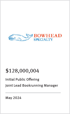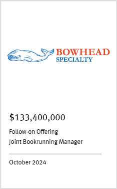 Focused on providing capital raising and advisory services for companies throughout the United States, Bermuda and Canada, KBW has unmatched expertise in the insurance and asset management industry.